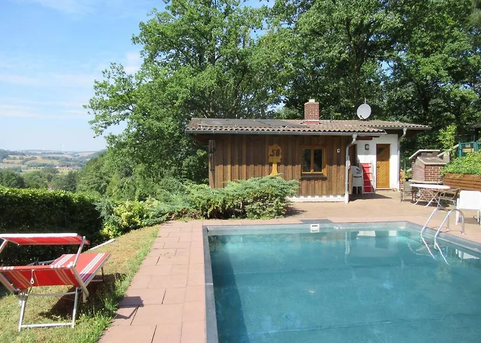 The 1-bedroom Feriendorf Mengshausen Villa is located around 25 minutes' walk from Mengshauser Kuppe Wooded Hill and boasts a swimming pool provided on a terrace for a pleasant stay.